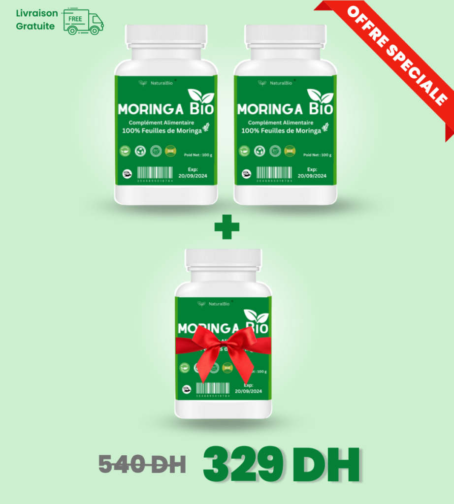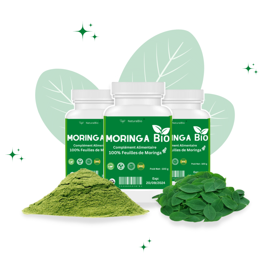 La poudre de Moringa est issue du Moringale un arbre tropical originaire d’Inde. Ses feuilles ont des grandes propriétés nutritionnelles. Elles sont riches en :
